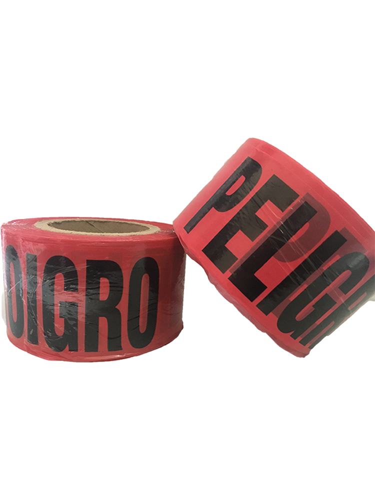 Rollo de cinta para acordonar color rojo con leyenda PELIGRO de 300m de largo por 9 cm de ancho.