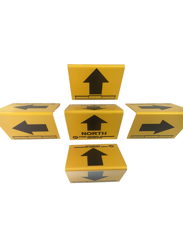 Indicadores tipo caballete de 90x75mm, fabricados en estireno cal. 40 color amarillo solido con escala métrica de 8 cm impresos en ambas caras en tinta negra mate para evitar reflejos