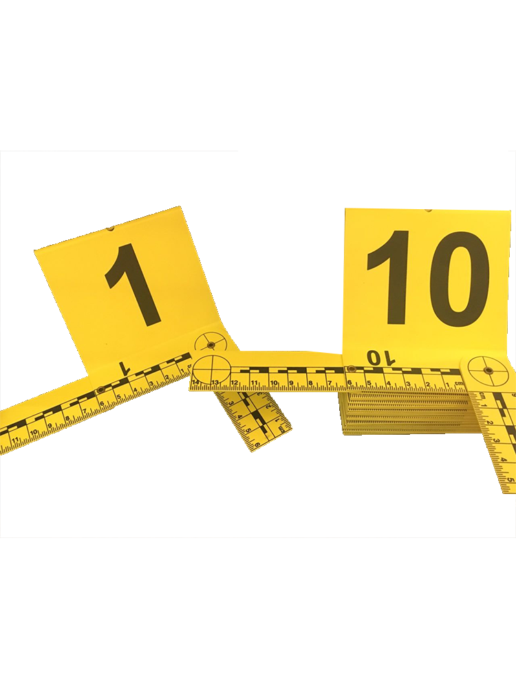 Indicadores tipo caballete de 89x80mm amarillos con regleta plegable de 6 cm x 14 cm que se divide en 3 partes, fabricados en estireno de alta resistencia pigmentado desde su inyección. con grabado color negro mate para evitar reflejos en fotografías.