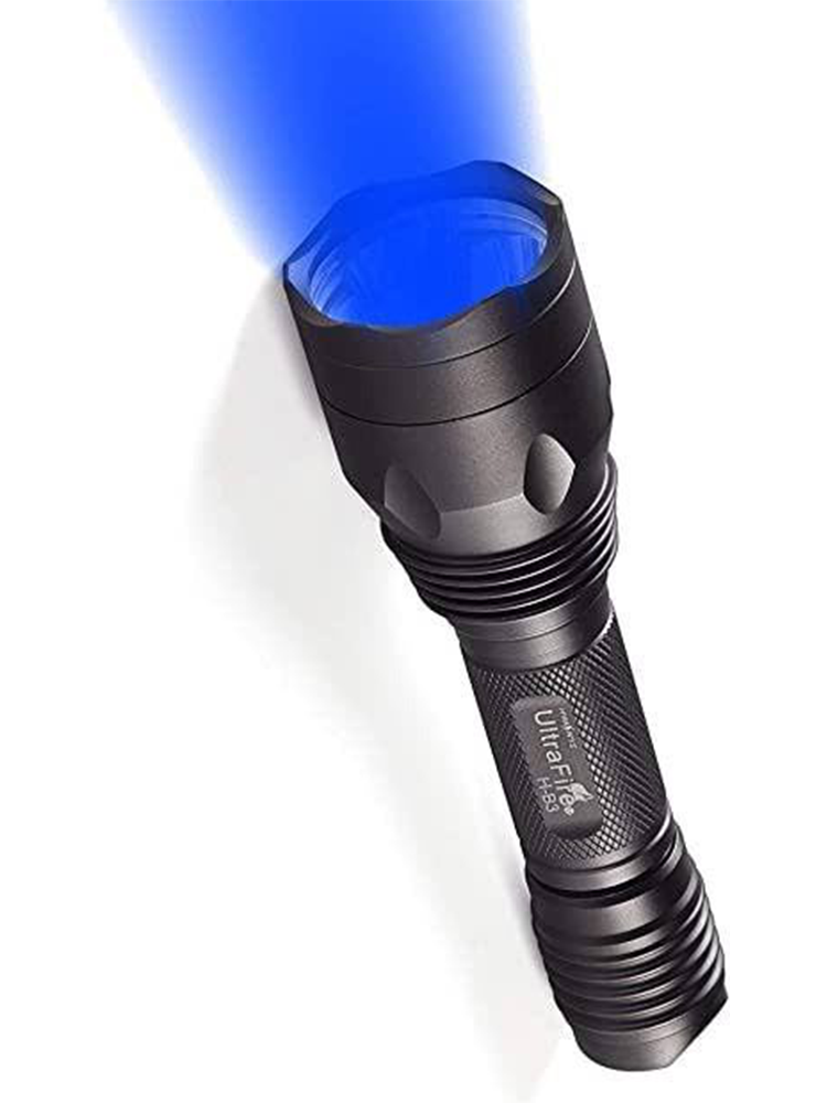 Linterna de luz azul con batería recargable incluye cargador.