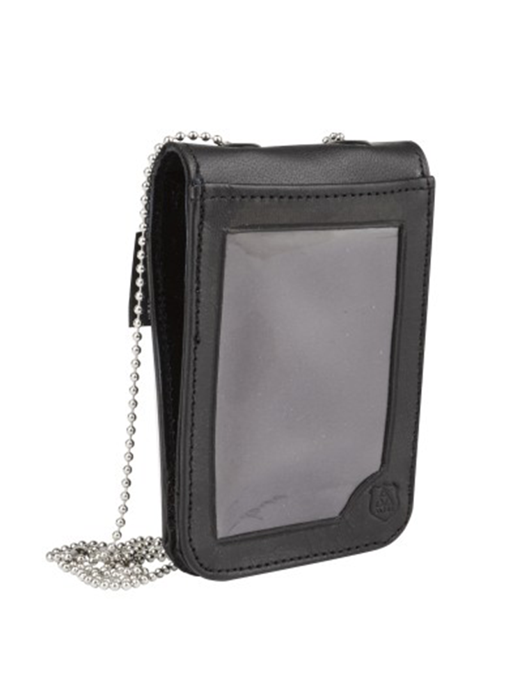 Perrera porta credencial 100 % piel genuina con porta placa bolsa invisible tras el porta placa porta credencial y 4 bolsas en su interior para tarjetas con cadena gruesa de acero.